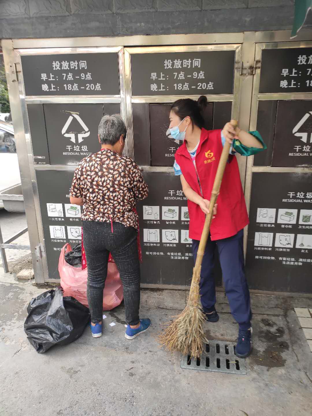 黨員志愿者們通過發(fā)放垃圾分類指導手冊,向居民介紹垃圾分類和垃圾亂倒的危害,宣傳垃圾分類的意義、類別和方式,詳細介紹四類垃圾所對應的性質(zhì)及具體種類,引導居民們正確進行垃圾分類。黨員志愿者們及時清掃居民投放垃圾時掉落的垃圾,保持小區(qū)環(huán)境的衛(wèi)生整潔。