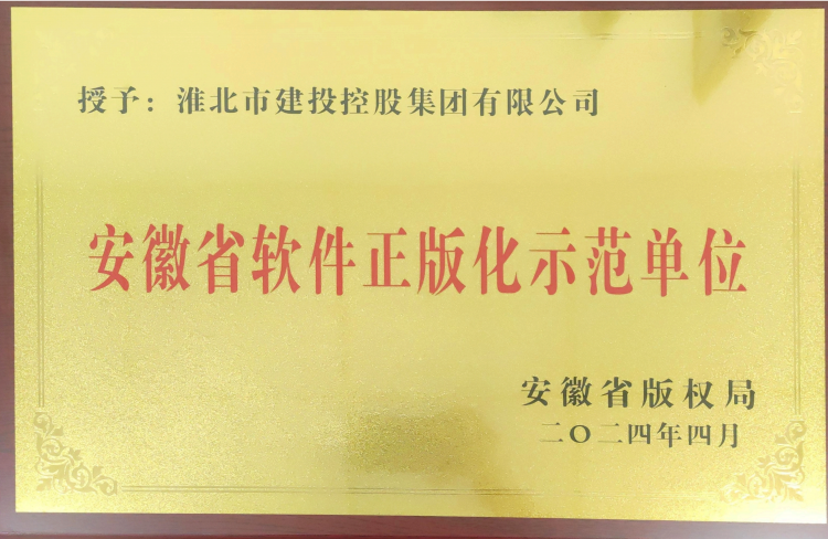2024年4月2日安徽省版權(quán)局下發(fā)了《關(guān)于公布2023年度安徽省版權(quán)示范創(chuàng)建認(rèn)定名單的通知》,認(rèn)定淮北市建投控股集團(tuán)有限公司等16家單位為“安徽省軟件正版化示范單位”。