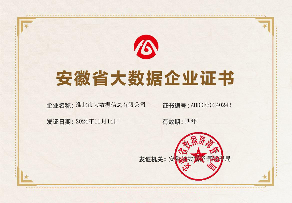 淮北市大數(shù)據(jù)公司通過省級(jí)大數(shù)據(jù)企業(yè)認(rèn)證