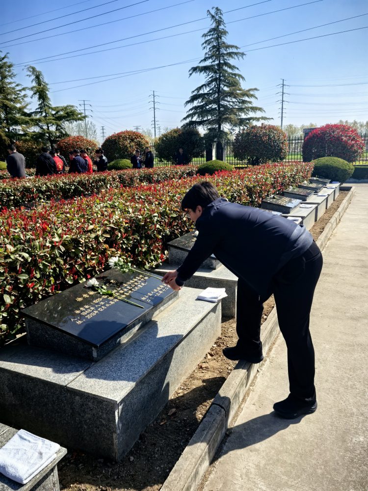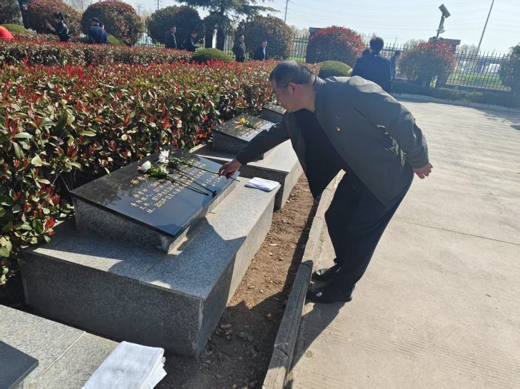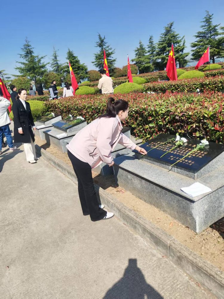 活動伊始,全體黨員整齊列隊,懷著崇敬之情向革命烈士敬獻花籃,寄托著對先烈們的無限哀思與崇高敬意。隨后,在鮮紅的黨旗前,全體黨員莊嚴地舉起右拳,重溫入黨誓詞。鏗鏘有力的誓言在陵園上空回蕩,彰顯了黨員們不忘初心、牢記使命的政治信念。最后,黨員們有序參觀了陵園內的紀念碑,支部書記楊旸同志帶領支部黨員紛紛向英雄先烈們獻上鮮花。