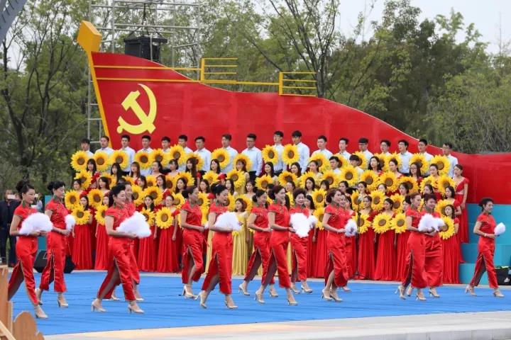 江山萬(wàn)里霞光紅,淮北大地踏歌聲。黨旗指引陽(yáng)光路,齊心共筑中國(guó)夢(mèng),演出在《沒有共產(chǎn)黨就沒有新中國(guó)》的歌聲中拉開帷幕。歌伴舞《南湖的船》、合唱聯(lián)唱《唱支山歌給黨聽》《我們共產(chǎn)黨人好比種子》《黨啊親愛的媽媽》《革命人永遠(yuǎn)是年輕》等膾炙人口的歌曲唱出了全體黨員的心聲,唱出了對(duì)祖國(guó)母親的深情厚誼。凝聚各方力量,鼓足轉(zhuǎn)型發(fā)展干勁,落實(shí)“四轉(zhuǎn)一享”,勇闖率先崛起新路,市委、市政府確定的中國(guó)碳谷·綠金淮北戰(zhàn)略是對(duì)五大發(fā)展理念的貫徹落實(shí),是省委、省政府決策部署在淮北的具體實(shí)踐,舞蹈《綠金淮北創(chuàng)造者》藝術(shù)化地呈現(xiàn)了我市蒸蒸日上的發(fā)展景象和干部群眾斗志昂揚(yáng)的精神風(fēng)貌。轉(zhuǎn)型崛起“綠金”引領(lǐng),新的征途中高歌猛進(jìn),轉(zhuǎn)型升級(jí)“綠金”起航,創(chuàng)新大道上行穩(wěn)致遠(yuǎn),一曲《綠金戀歌》將整場(chǎng)演出推向高潮,現(xiàn)場(chǎng)響起雷鳴般掌聲。演出最后在《共筑中國(guó)夢(mèng)》的歌聲中落下帷幕。