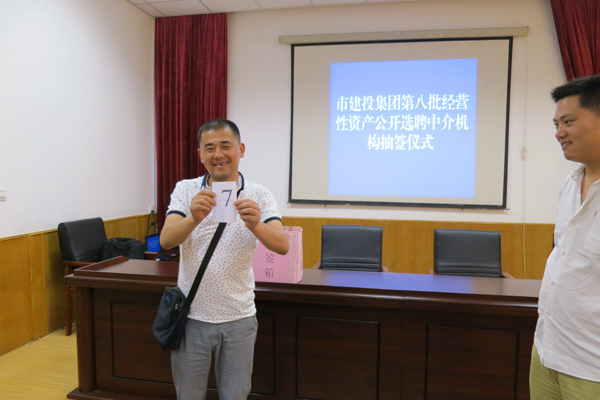 7月29日下午,市建投集團舉行了2014年第八批經(jīng)營性資產(chǎn)拍租選聘中介機構(gòu)抽簽儀式。為確保選聘中介機構(gòu)在公開、公平、公正的原則下進行,由市建投集團從選聘中介機構(gòu)備選庫中隨機抽取評估公司和拍賣行各一名代表現(xiàn)場到臺上進行互相抽取。此舉規(guī)范了中介機構(gòu)之間的競爭,提高了服務(wù)水平,增加了委托中介機構(gòu)選聘工作的透明度,受到了評估與拍賣雙方一致的好評與肯定。