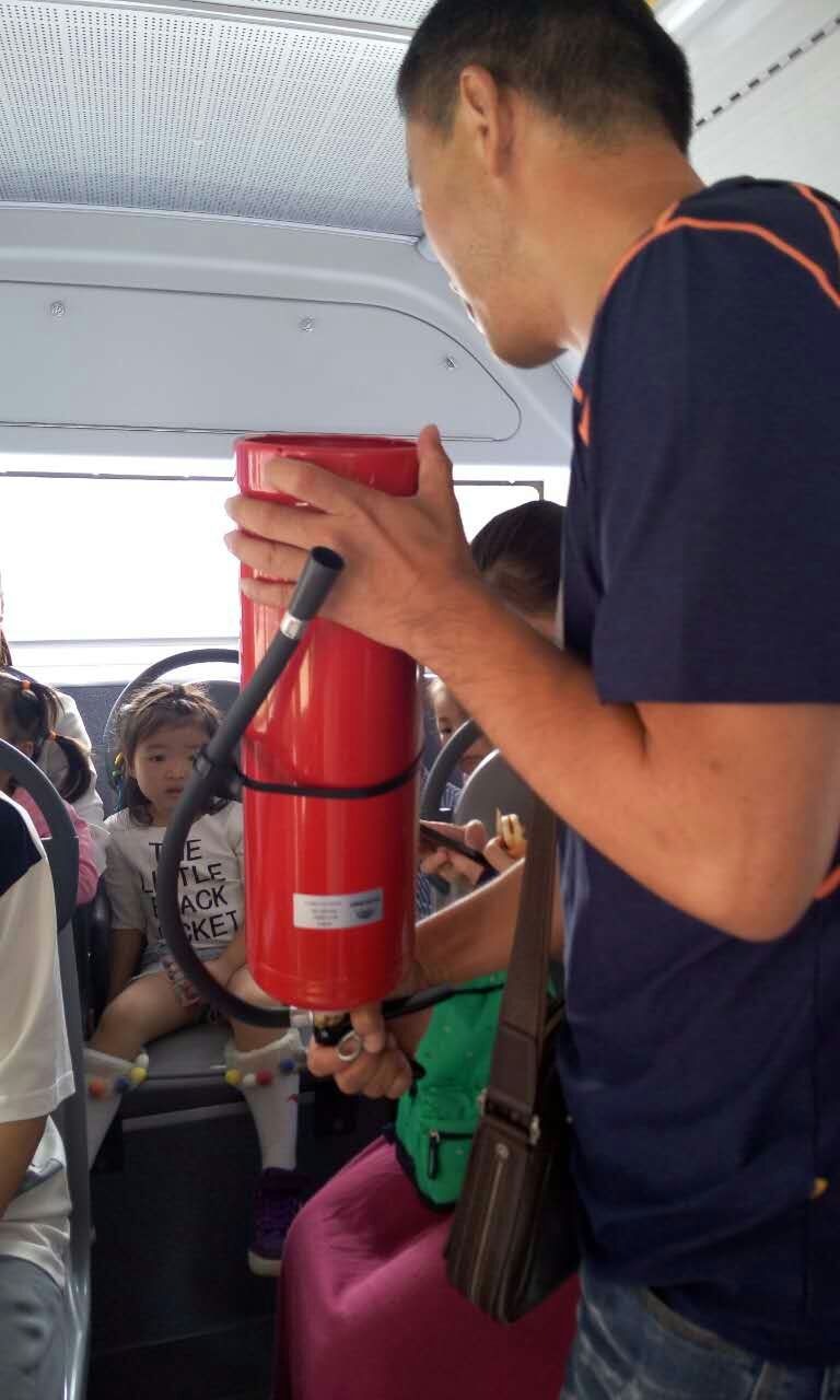 孩子們在家長陪同下,來到107路實(shí)驗(yàn)三小站臺,工作人員詳細(xì)向孩子們講解安全文明乘車需要注意的事項(xiàng)。如何有序地安全上、下車?進(jìn)車廂內(nèi)為什么要扶穩(wěn)坐好?在公交車上與親人走散后怎么辦?如何使用安全錘、滅火器等常見的安全問題,提醒孩子們及家長乘坐公交車一定要遵守乘車秩序,安全文明乘車。接著,工作人員邀請小朋友及家長乘坐107路公交車,并模擬乘車過程遇到急剎車等突發(fā)狀況時的情景。同時與小朋友們互動,演示安全錘和滅火器的使用方法,這一環(huán)節(jié)受到家長的鼓掌點(diǎn)贊。