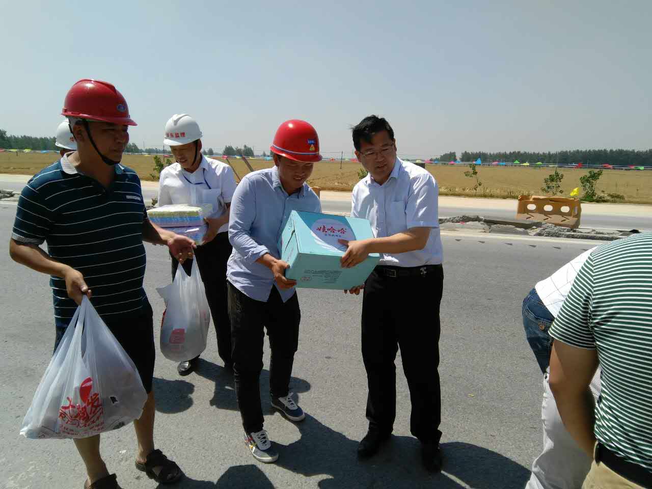 驕陽(yáng)似火,酷暑難耐。為感謝激勵(lì)奮斗在烈日中的一線員工,2017年5月27日,集團(tuán)黨委委員、副總經(jīng)理、交投公司總經(jīng)理張立哲帶領(lǐng)交投公司黨支部一行先后走訪S202收費(fèi)站項(xiàng)目部和高樓山石料廠項(xiàng)目部門,看望慰問堅(jiān)守在高溫烈日下的一線員工。