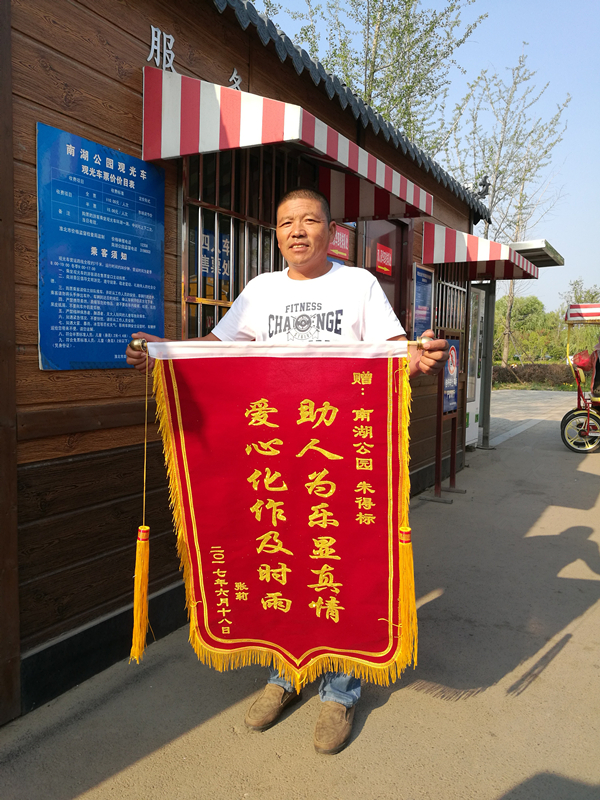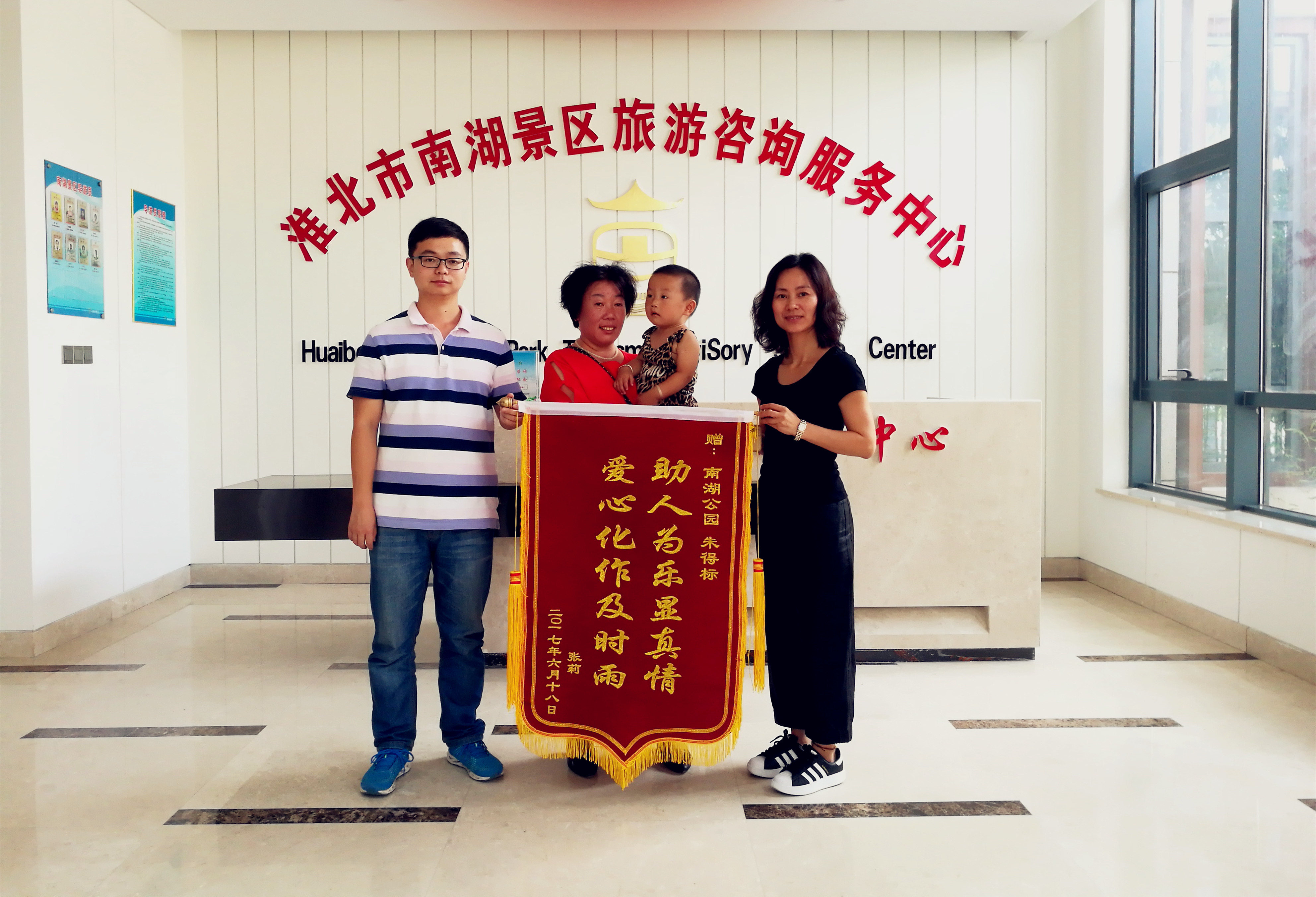 在朱班長和景區(qū)工作人員的共同努力下,于在當天下午聯(lián)系到了失主張女士,并將她丟失的背包轉(zhuǎn)交給了她本人??粗Ф鴱?fù)得的背包,張女士十分感動。6月26日上午張女士再次來到南湖景區(qū)游客服務(wù)中心,向景區(qū)員工以及拾金不昧的朱班長分別表示了感謝,并向拾金不昧的朱班長送來了錦旗。