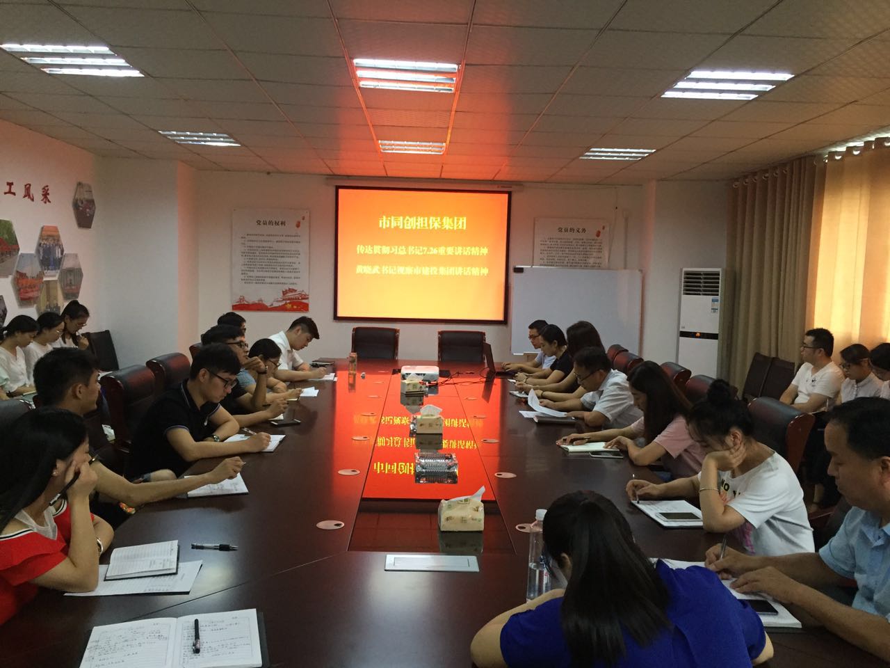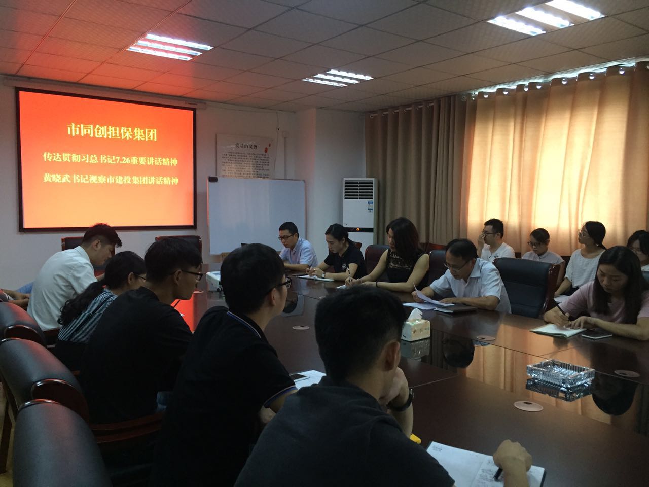 8月22日,市同創(chuàng)融資擔(dān)保集團(tuán)組織全體員工學(xué)習(xí)貫徹習(xí)總書(shū)記7.26重要講話精神與市委書(shū)記黃曉武同志調(diào)研市建投集團(tuán)講話精神。