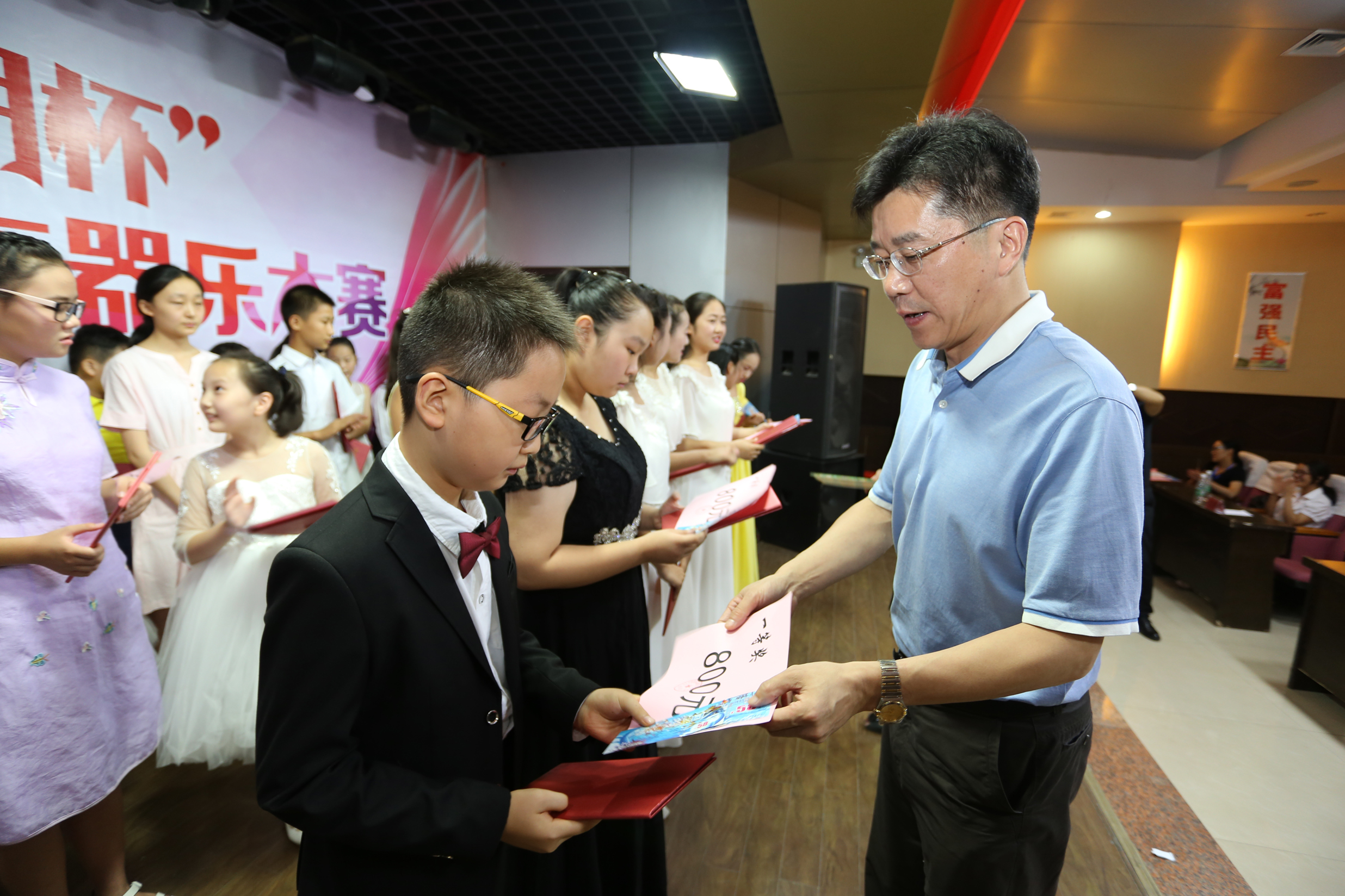 8月26日下午,“南湖杯”首屆青少年器樂(lè)大賽頒獎(jiǎng)典禮在市老年大學(xué)一樓會(huì)議室舉行。淮北市文化旅游體育委員會(huì)黨委委員、副主任吳文閣,淮北市建投控股集團(tuán)有限公司黨委委員、紀(jì)委書(shū)記王獻(xiàn)忠等出席頒獎(jiǎng)典禮,并為獲獎(jiǎng)選手頒獎(jiǎng)。