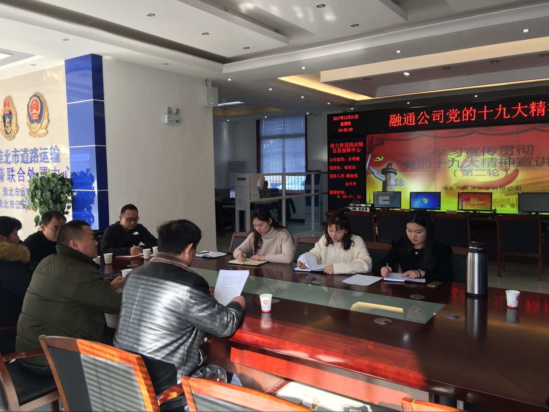 按照集團統(tǒng)一部署要求,12月21日融通公司全體員工在市道路運輸信息指揮中心一樓大廳進(jìn)行第二輪學(xué)習(xí)傳達(dá)黨的十九大精神。