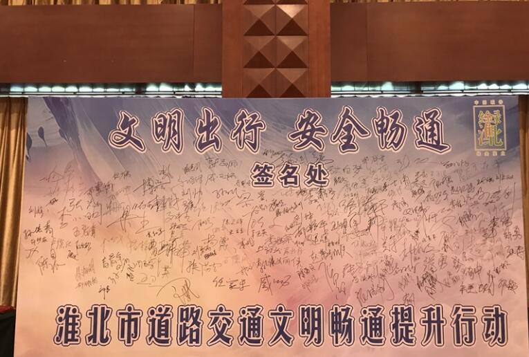啟動儀式上,市政府副市長、公安局黨委書記、局長章銀發(fā)動員講話,動員全市各行各業(yè)積極參與到“文明出行 安全暢通”淮北市道路交通文明暢通提升行動計劃中去。與會的來自各行各業(yè)的代表共同觀看了文明交通公益廣告招貼畫作品,并紛紛在安全出行簽名欄上簽字。