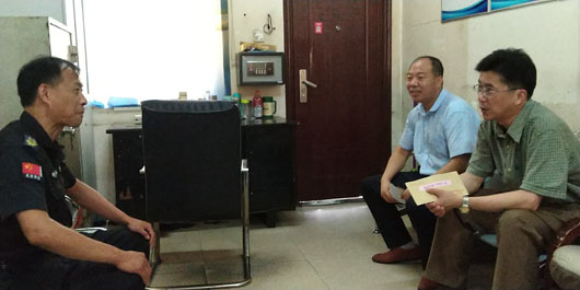 在中國(guó)共產(chǎn)黨成立97周年之際,7月13日上午,集團(tuán)公司黨委委員、紀(jì)委書記王獻(xiàn)忠在淮北市保安有限公司黨支部書記、副書記的陪同下來到押運(yùn)一中隊(duì)看望慰問生活困難的老黨員,送去黨組織的關(guān)懷和溫暖。他要求各級(jí)黨組織要懷著深厚感情,用心用情為困難老黨員排憂解難,讓廣大老黨員和困難黨員切實(shí)感受到黨組織的關(guān)懷與溫暖。