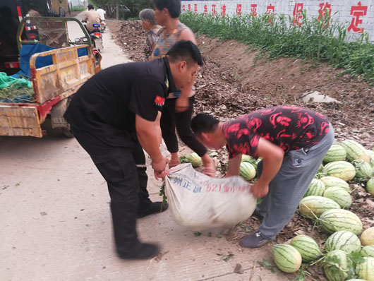 氣象部門預(yù)報(bào),“溫比亞”即將來襲。8月12日上午,保安公司扶貧小組火速至火神廟李桂蘭家中進(jìn)行了解暴風(fēng)雨來臨前的預(yù)防工作,得知李桂蘭家庭種植一萬余斤西瓜至今未收,在了解情況后,扶貧小組針對(duì)李桂蘭家中缺少勞動(dòng)力等情況,立即組織人員對(duì)西瓜進(jìn)行激烈的搶收工作,經(jīng)過保安隊(duì)員緊張激烈的搶收,終于在暴風(fēng)雨來臨之前完成搶收工作,并以單位名義和發(fā)動(dòng)員工方式,以市場(chǎng)價(jià)幫助購銷西瓜,直接為李桂蘭家庭挽回經(jīng)濟(jì)損失一萬余元。