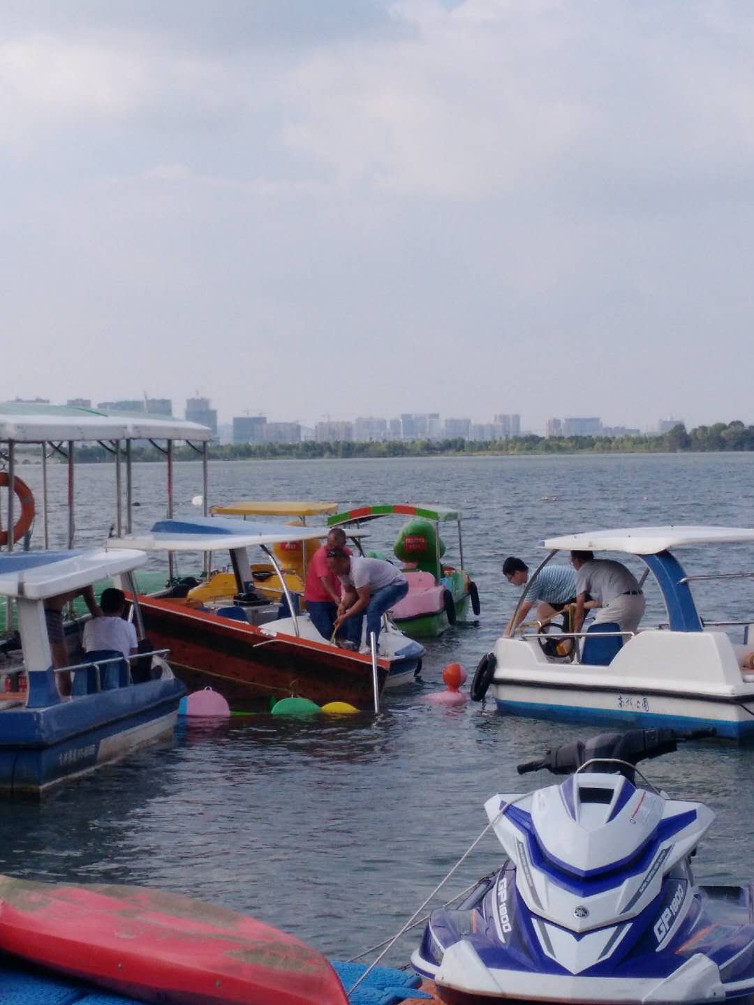 受連日暴雨影響,南湖景區(qū)多處出現(xiàn)積水現(xiàn)象,抗訊領(lǐng)導(dǎo)小組第一時間趕赴現(xiàn)場,進(jìn)行應(yīng)急處置。工作人員冒雨挖掘排水渠,設(shè)置安全警戒線,及時清掃路面淤泥和倒伏的樹木。另外,旅游碼頭由于湖區(qū)水位上漲,浮橋防抱柱達(dá)到最高升降點(diǎn),工作人員現(xiàn)場進(jìn)行加高加固及時調(diào)整躉船泊位,消除安全隱患。