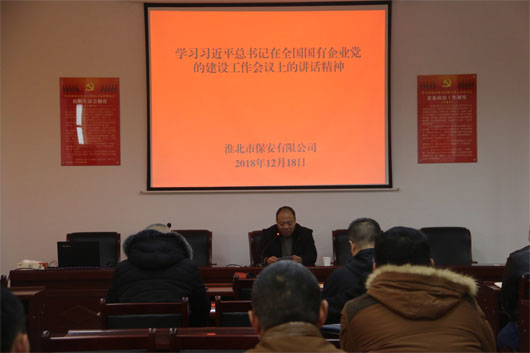2018年12月18日,淮北市保安有限公司組織黨員干部在公司黨支部書記的帶領(lǐng)下,認(rèn)真學(xué)習(xí)了中共中央總書記、國家主席、中央軍委主席習(xí)近平全國國有企業(yè)黨的建設(shè)工作會議的講話精神。