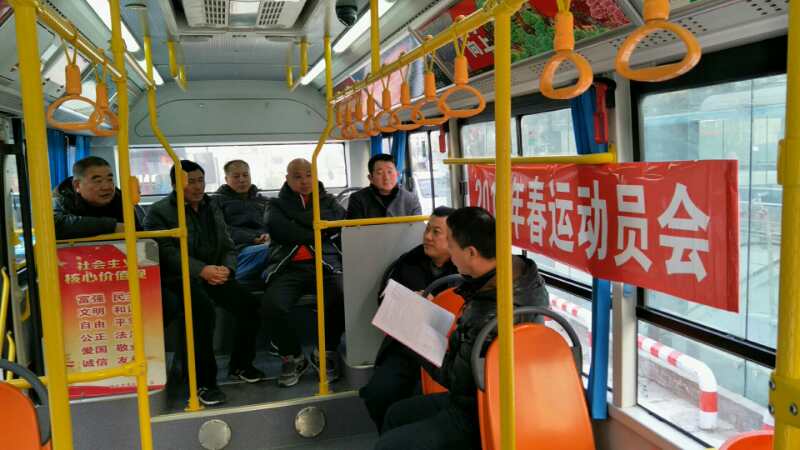 新年伊始,公交第二分公司精心謀劃春運工作,認(rèn)真做好春運期間市民出行的保障,1月20日晚在駕駛員全部收車后召開了春運動員會。會上要求,要將春運列為當(dāng)前中心工作,首要任務(wù),堅持把安全生產(chǎn)放在首位,層層落實安全生產(chǎn)責(zé)任制;加強(qiáng)對公交車輛的檢修維護(hù),所有參運車輛必須經(jīng)過檢查,杜絕車輛帶病行駛;加強(qiáng)駕駛員的職業(yè)道德、安全服務(wù)教育和營運服務(wù)動態(tài)監(jiān)管,嚴(yán)格春運期間檢查力度,做到“逢可疑物(包)必查,逢危險品必查”,堅持杜絕乘客攜帶易燃易爆危險品及鞭炮上車;加強(qiáng)營運、安全、機(jī)務(wù)、等部門的通力配合;完善惡劣天氣下公交應(yīng)急預(yù)案,切實做好晴冷、霧霾、凍雨、暴雪、結(jié)冰等惡劣天氣安全營運應(yīng)對措施,保障公交營運服務(wù)正常出行。