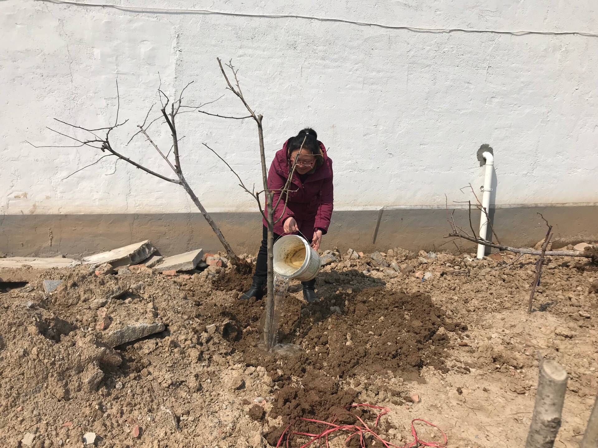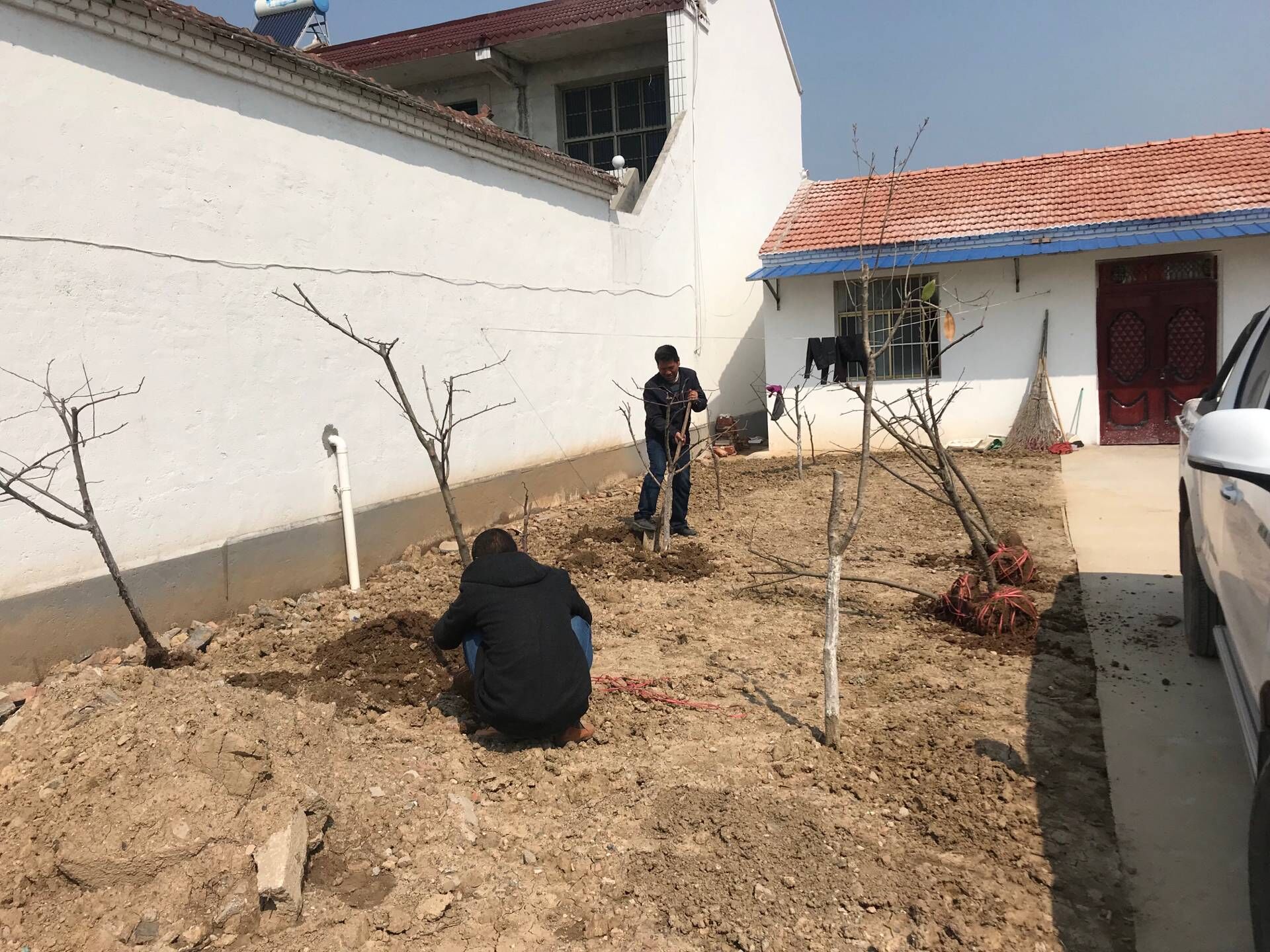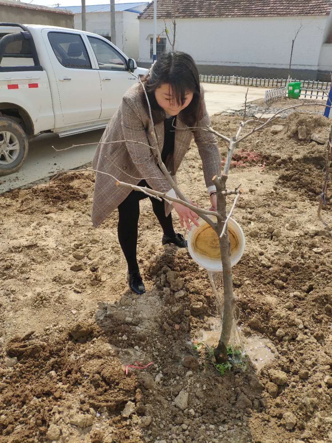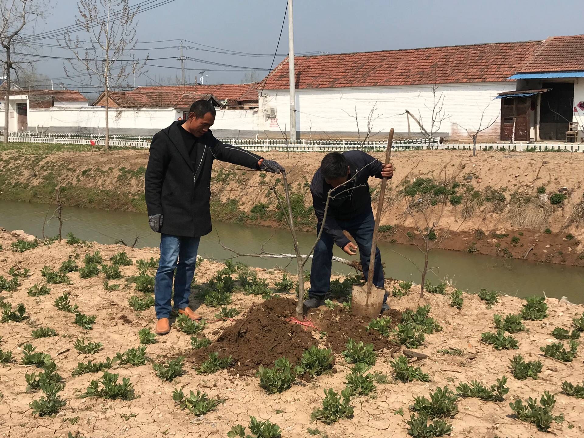 生態(tài)景觀公司扶貧小組一行4人,3月25日驅(qū)車帶著5棵蘋果樹苗來到火神廟村呂秀英老人家進(jìn)行樹苗補(bǔ)種。大家分工植樹,有的挖坑,有的扶樹,有的培土,有的澆水,每道工序有條不紊,一片繁忙。扶貧小組成員不辭辛苦,以實際行動投身到扶貧工作中去,為貧困戶獻(xiàn)出一份愛心,點燃一盞希望。助力貧困戶加快脫貧致富步伐,共同邁入全面小康。