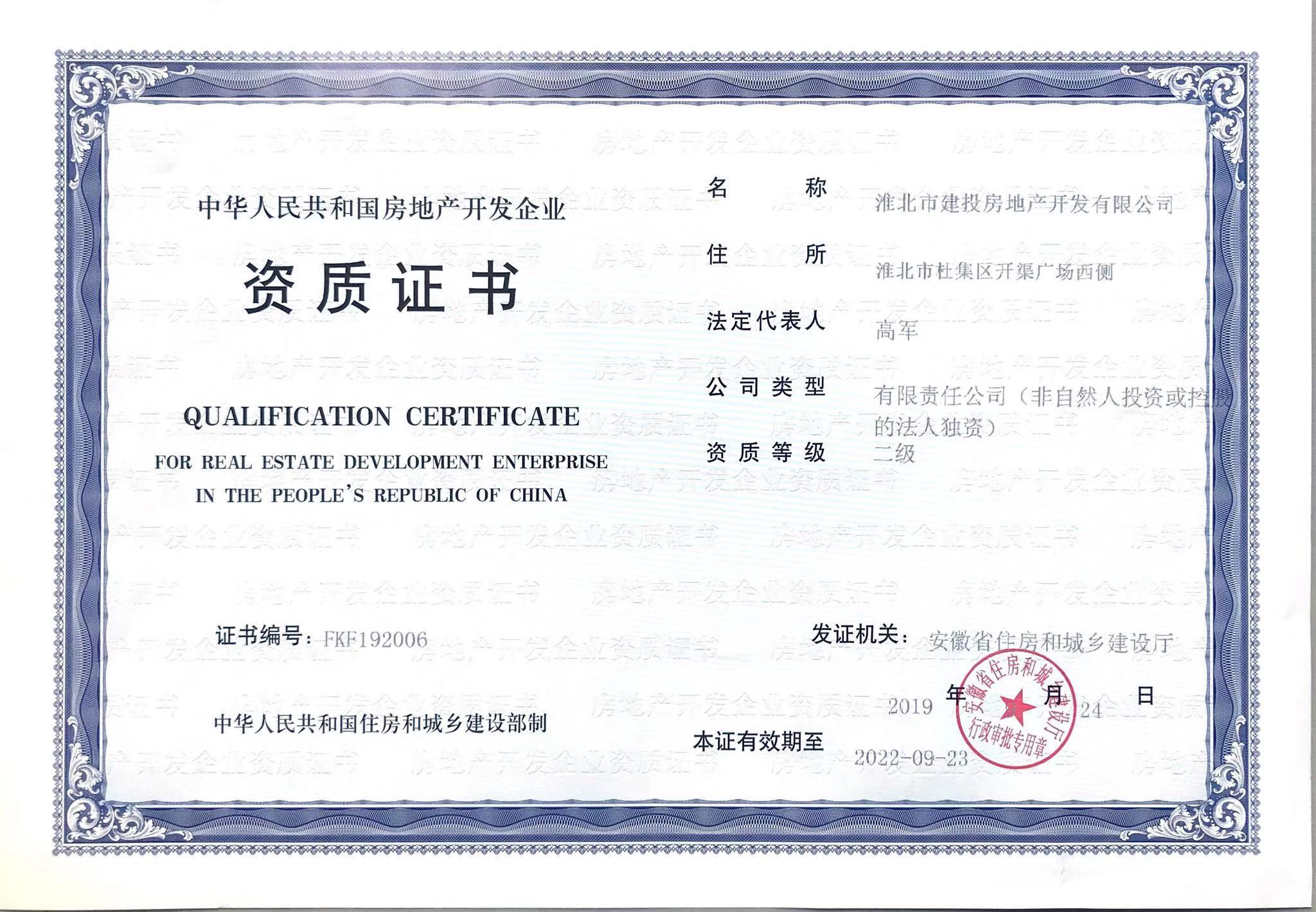 2019年9月24日,經(jīng)安徽省住房和城鄉(xiāng)建設(shè)廳核準(zhǔn)并向淮北市建投房地產(chǎn)開發(fā)有限公司頒發(fā)了房地產(chǎn)開發(fā)企業(yè)二級(jí)資質(zhì)。據(jù)悉,淮北市僅有5家房地產(chǎn)企業(yè)取得房地產(chǎn)開發(fā)二級(jí)資質(zhì)。二級(jí)開發(fā)資質(zhì)的成功取得,標(biāo)志著房地產(chǎn)公司專業(yè)資質(zhì)實(shí)現(xiàn)了跨越提升,公司將在市場(chǎng)開發(fā)、投資經(jīng)營(yíng)、項(xiàng)目推廣和融資信貸、品牌信譽(yù)等方面邁上嶄新的臺(tái)階,獲得更多市場(chǎng)機(jī)遇,為在全國(guó)范圍內(nèi)承攬房地產(chǎn)開發(fā)項(xiàng)目、全方位參與市場(chǎng)競(jìng)爭(zhēng)奠定了堅(jiān)實(shí)的基礎(chǔ)。