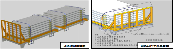 1. 運(yùn)輸過程中,因滿載構(gòu)件貨車的慣性巨大,故構(gòu)件捆綁、貨車行駛速度、安全限位擋塊等安全措施,要求如下: