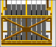 b. 第一代運(yùn)輸架左右兩側(cè)必須使用立柱對(duì)拉,做好構(gòu)件傾斜的防護(hù),如下圖示:
