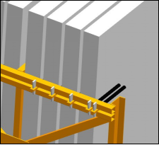 c. 墻板運(yùn)輸前,每塊構(gòu)件必需用鐵桿插銷固定,外面兩側(cè)(上、下部位)用2根鐵桿插銷固定,中間每塊構(gòu)件上、下部位,均用一根插銷固定,如下圖示: